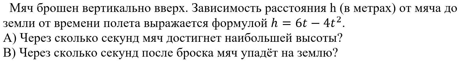 Тогда А) решается по другому: t=-b/2a=-6/(2*(-4))=6/8=0,75 (c).