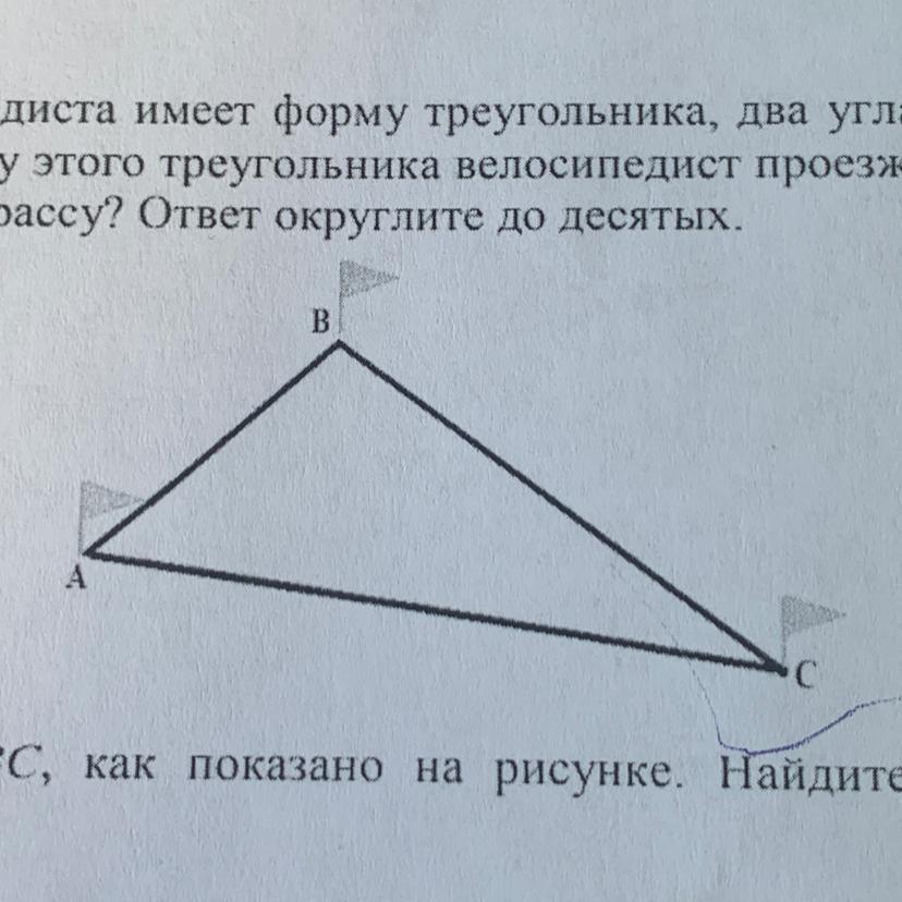 2. Трасса для велосипедиста имеет форму треугольника, два угла которого равны 50° и