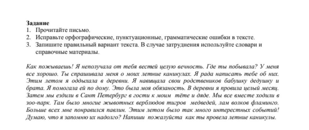 2. Исправьте орфографические, пунктуационные, грамматические ошибки в тексте. 3. Запишите правильный вариант текста. В случае затруднения используйте словари и