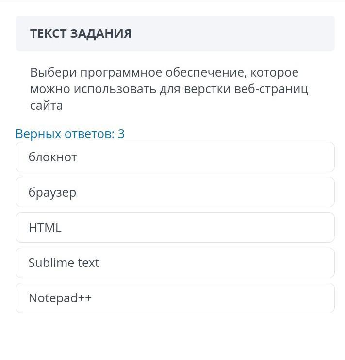 Выбери програмное обеспечение , которое можно использовать для верстки веб - страниц сайта
