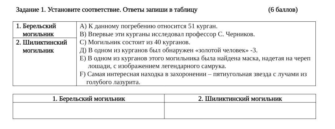 Задание 1. Установите соответствие. Ответы затиши в таблицу