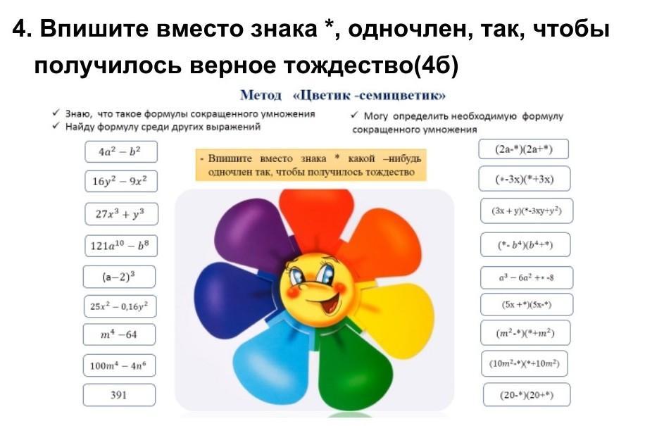Впишите вместо знака *, одночлен, так, чтобы получилось верное тождество