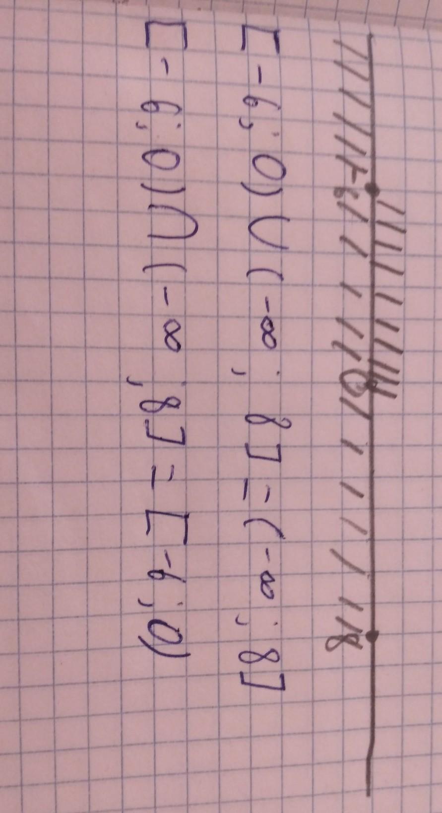 Изобразите на координатной прямой и запишите пересечение и объединение числовых промежутков: [ – 6; 0) и .