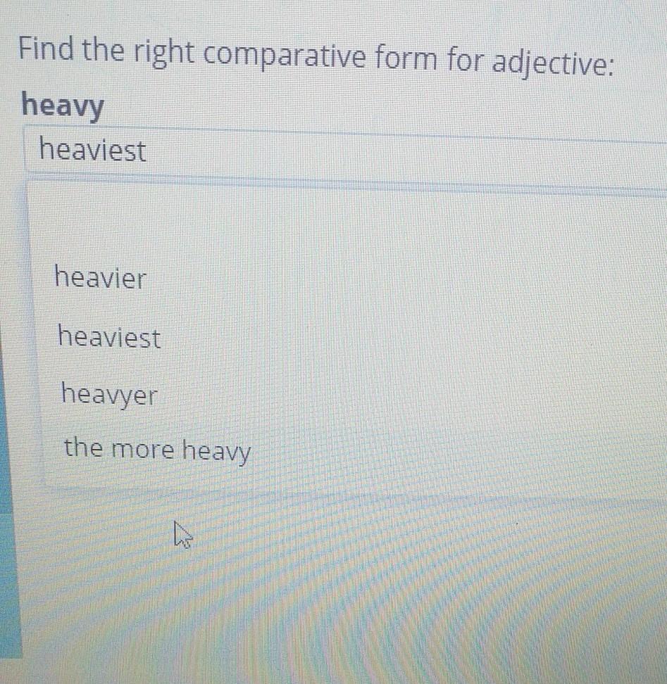 heavier. Удачи на тестике)
