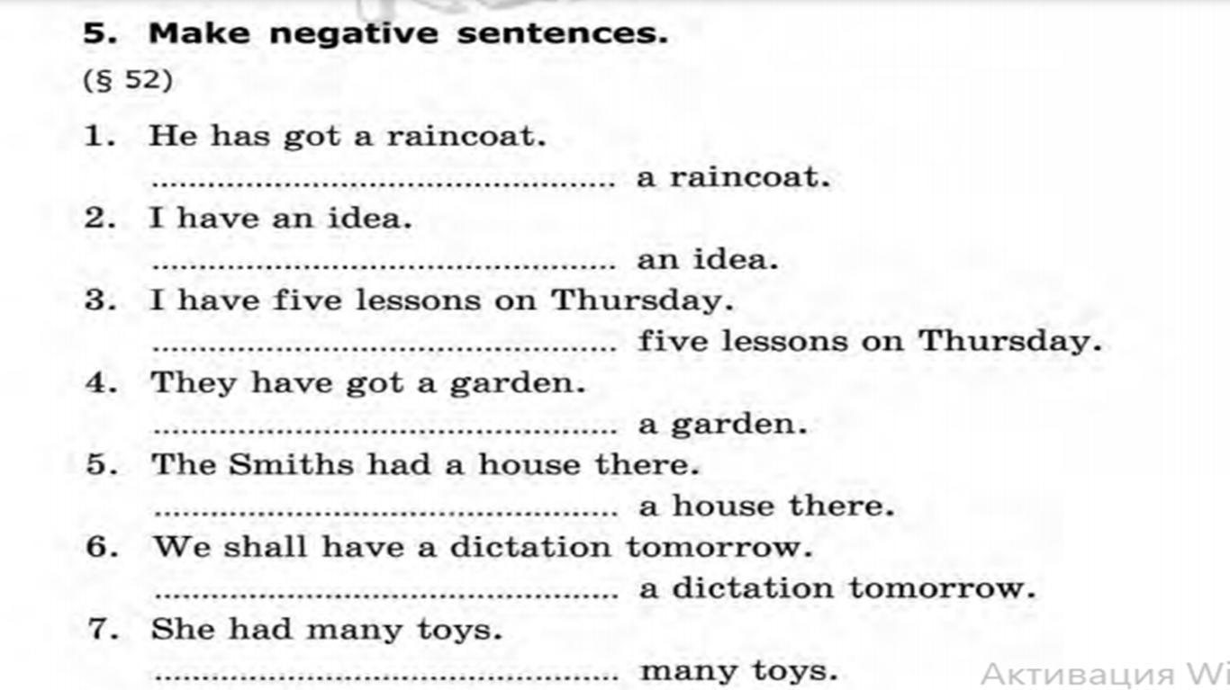 3.I haven't got five lessons on Thursday.