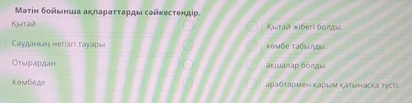 Мәтін бойынша ақпараттарды сәйкестендір.