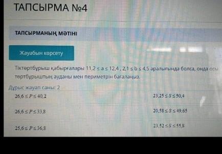 Если стороны прямоугольника находятся в диапазоне 11,2, так как 12,4 2,1 <bs 4,5, тогда оцените площадь и периметр этого прямоугольника. Количество правильных ответов: 2 26,6 <PS 40,2 23, 25 SS S 50,4 26,6 SP 333,8 20,58 <s <49 65 23 52 <s S 55,8 25,6 SPS 36, 8 зделаю лучшихм ответом