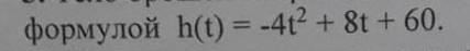 Тело брошено вертикально вверх. Высота тела в момент времени описывается формулой h(t)= -4t^2 + 8t + 60.