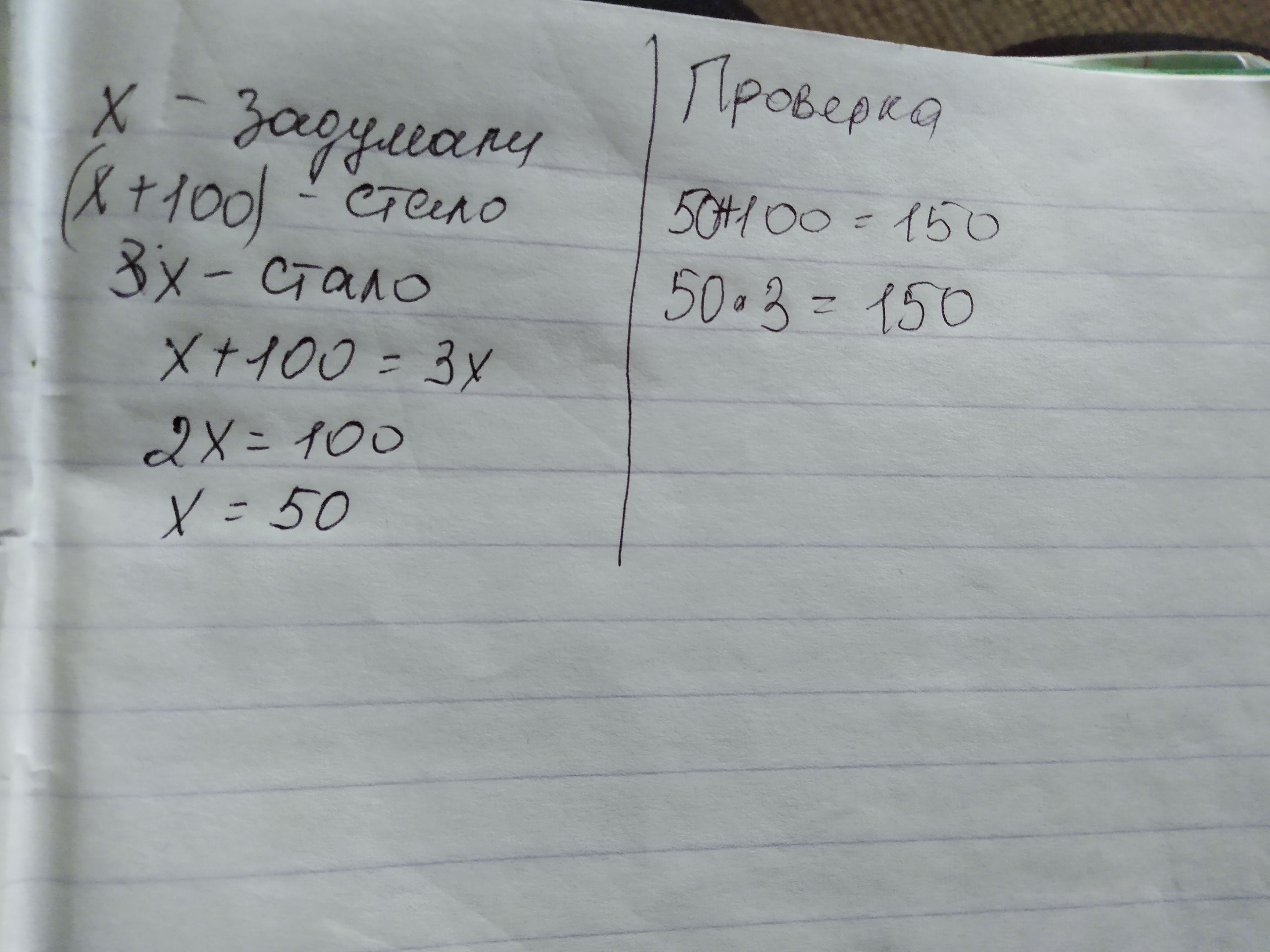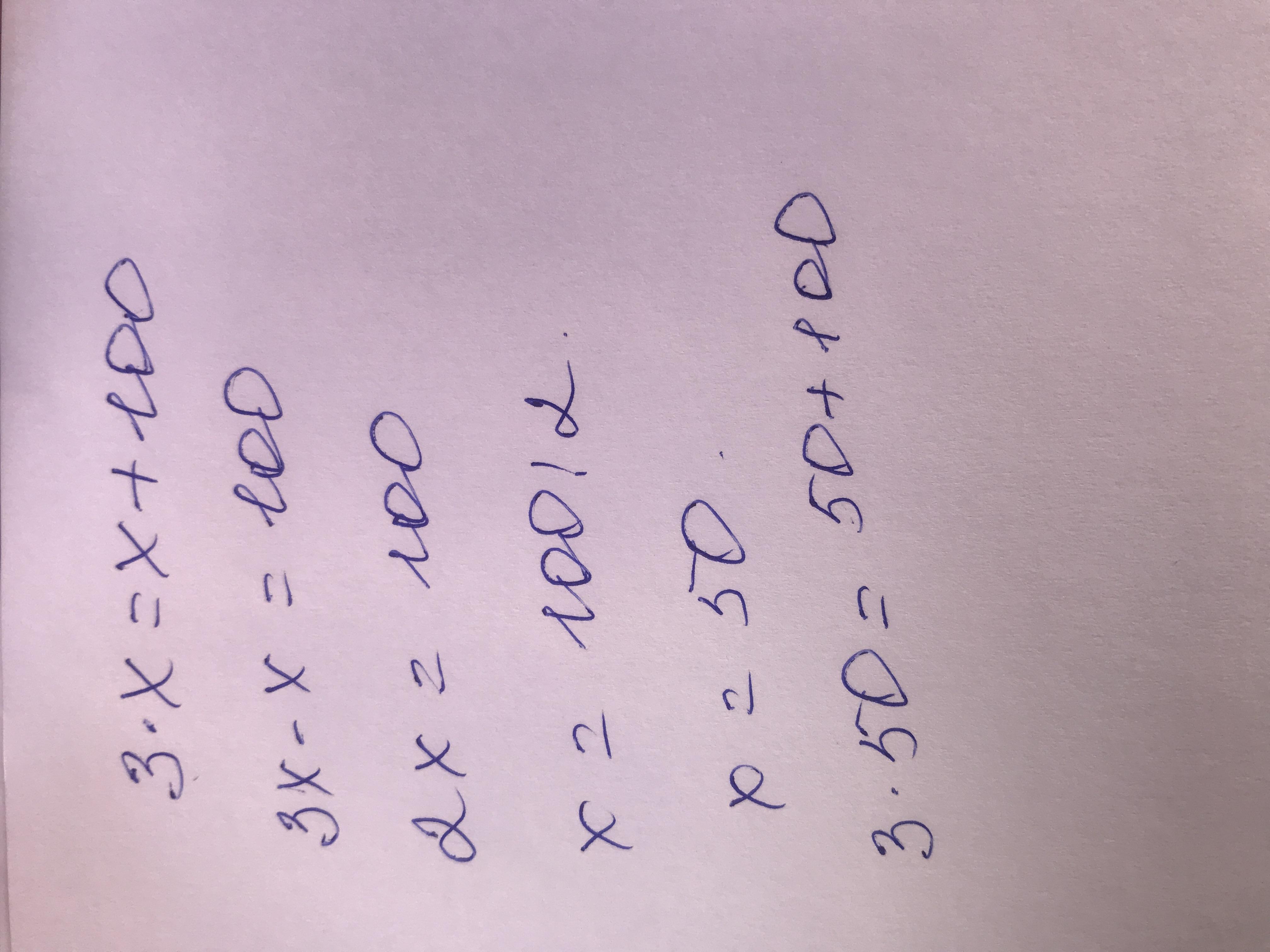 задумали число. если его увеличить на 100, то число станет атрое больше. Какое число задумали?