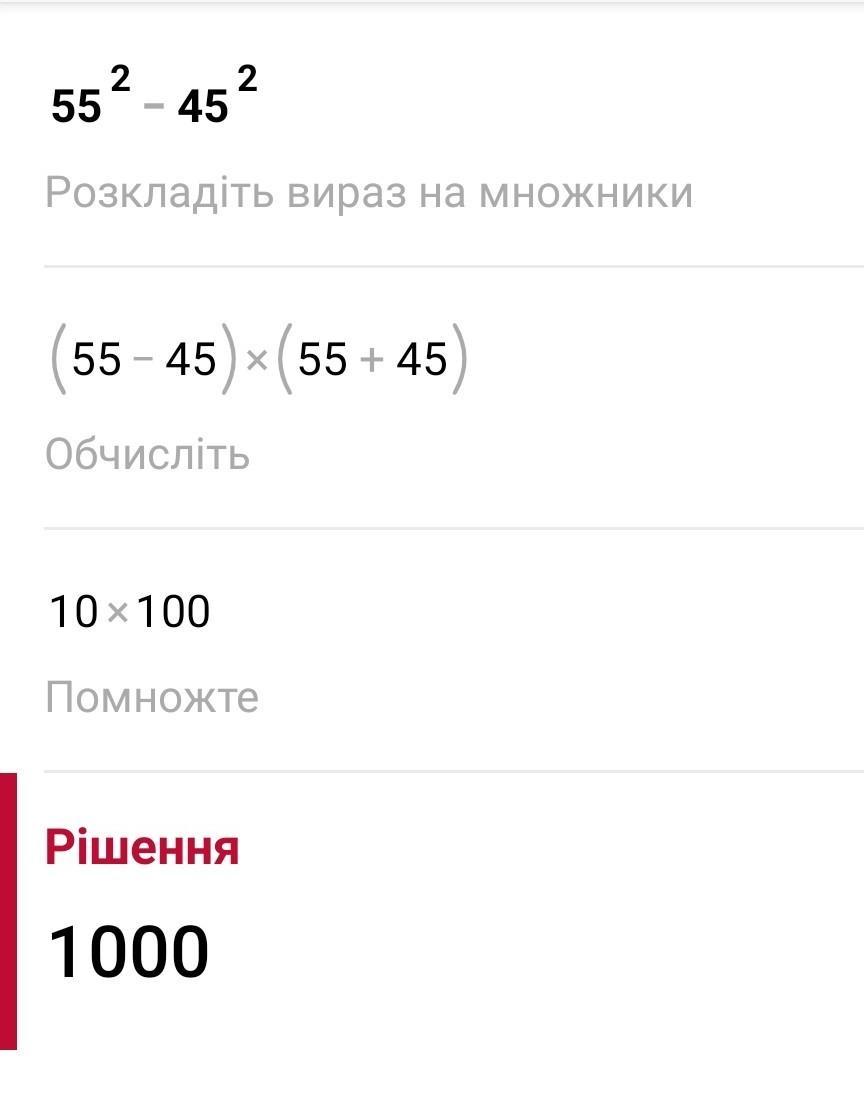 А) (55-45)*(55+45) = 10*100=1000