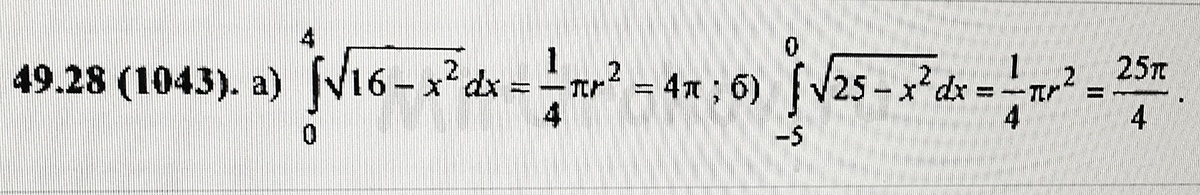таким образом искомый интеграл равен четвертой части площади круга с радиусом 5