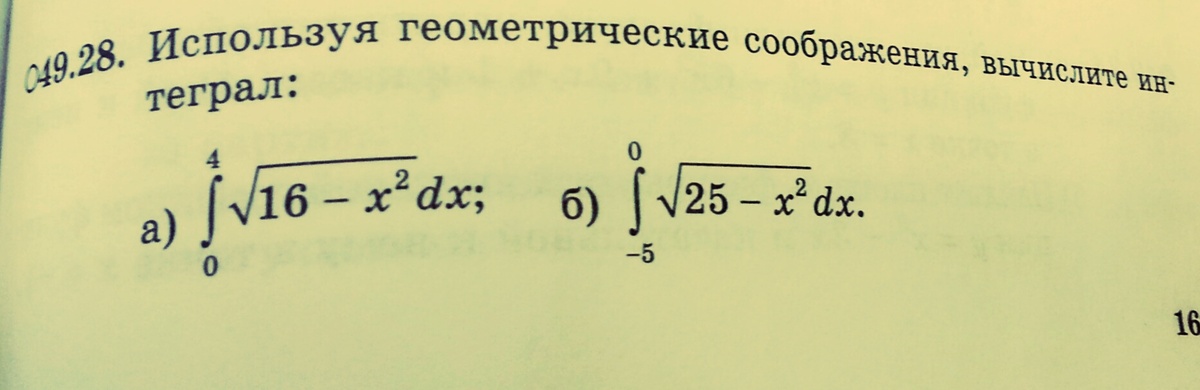 таким образом искомый интеграл равен четвертой части площади круга с радиусом 4