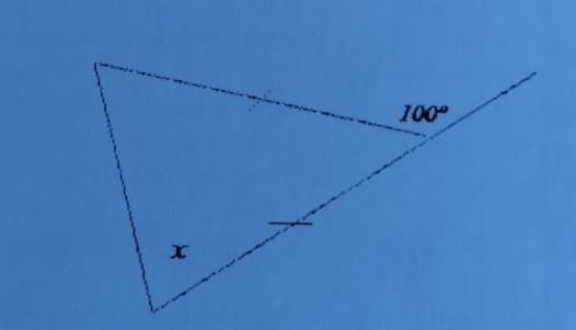 2) На чертеже изображен равнобедренный треугольник. Угол х расположен в основании треугольника. В вершине внешний угол равен 100 градусам. Находим угол вершины: 180 - 100 = 80 градусов. Сумма двух других углов основания будет равна 180 - 80 = 100 градусов. Угол Х будет равен: 100 / 2 = 50 градусов.