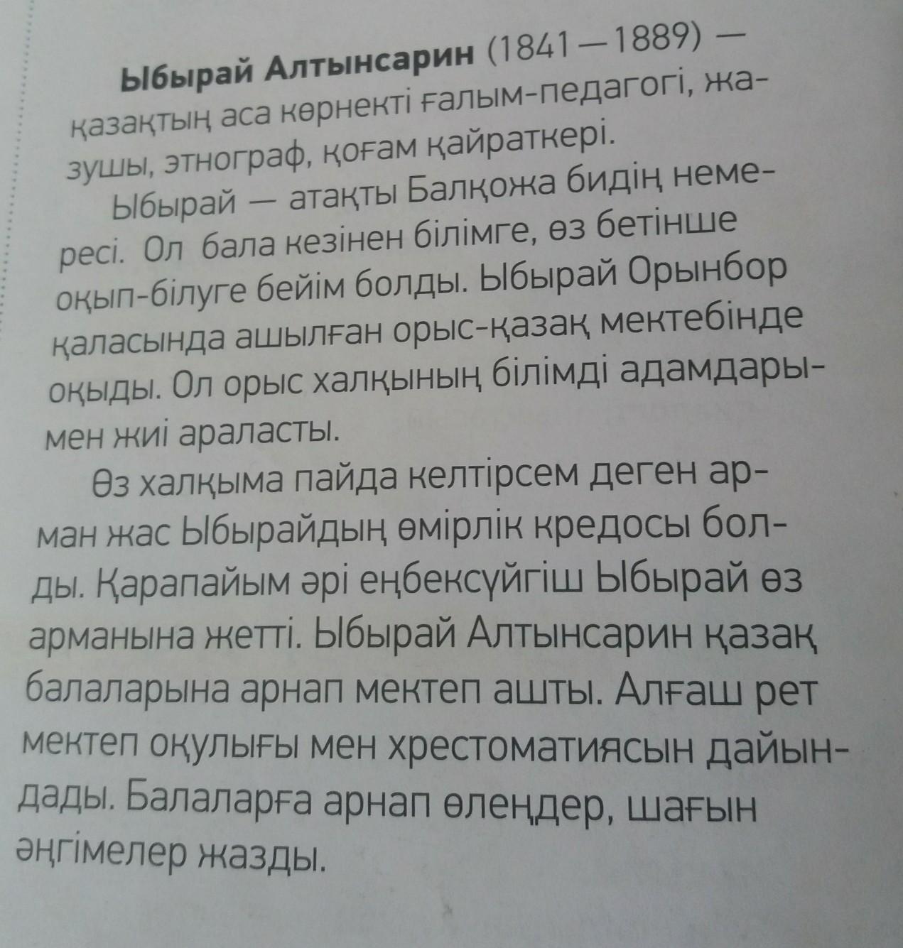 1)- Ы. Алтынсарин қоғам қайраткері, көрнекті жазушы