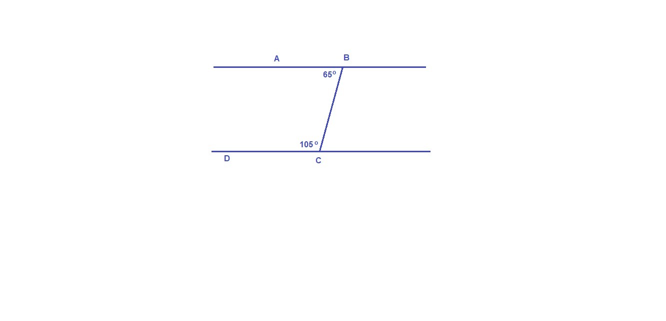 СРОЧНО!!!угол ABC=65 градусов , угол BCD=105 градусов могут ли прямые AB и CD быть 1)параллельными 2) пересекающимися?