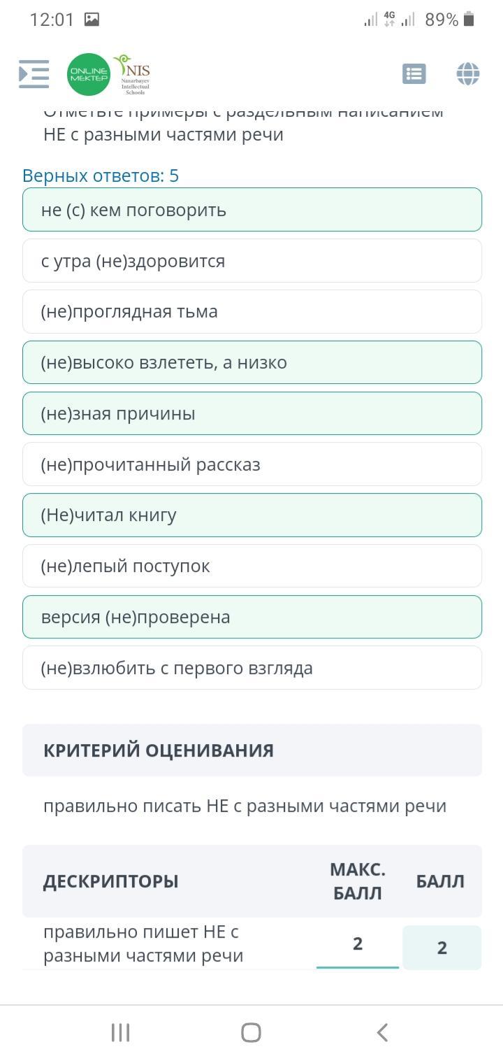Задание 2) Отметьте примеры с раздельным написанием НЕ с разными частями речи верных ответов 5