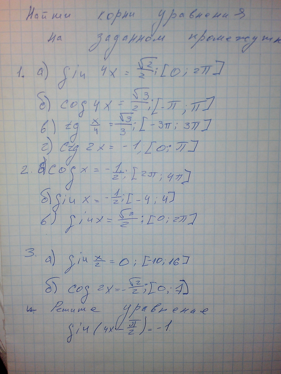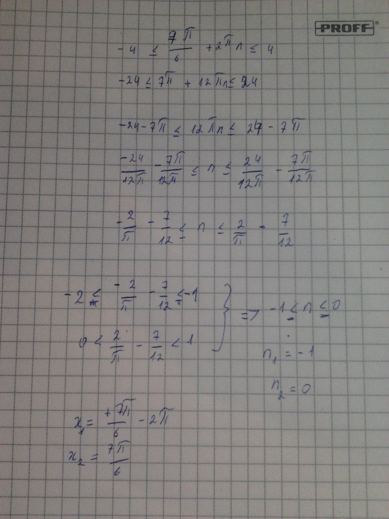 в)x/4=-17 П/6 или x/4=-11 П/6 или x/4=-5 П/6 или x/4= П/6 или х/4=7 П/6 или