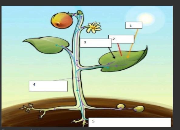 фотосинтез,випаровування,всмоктування поживних речовин з грунту