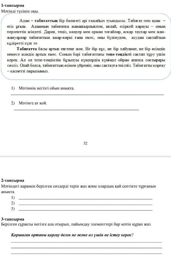 1.Мәтінде табиғатты қорғау туралы айтылады