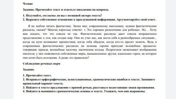 Задание. Прочитайте текст и ответьте письменно на вопросы. 1. Подумайте, согласны ли вы с позицией автора текста?