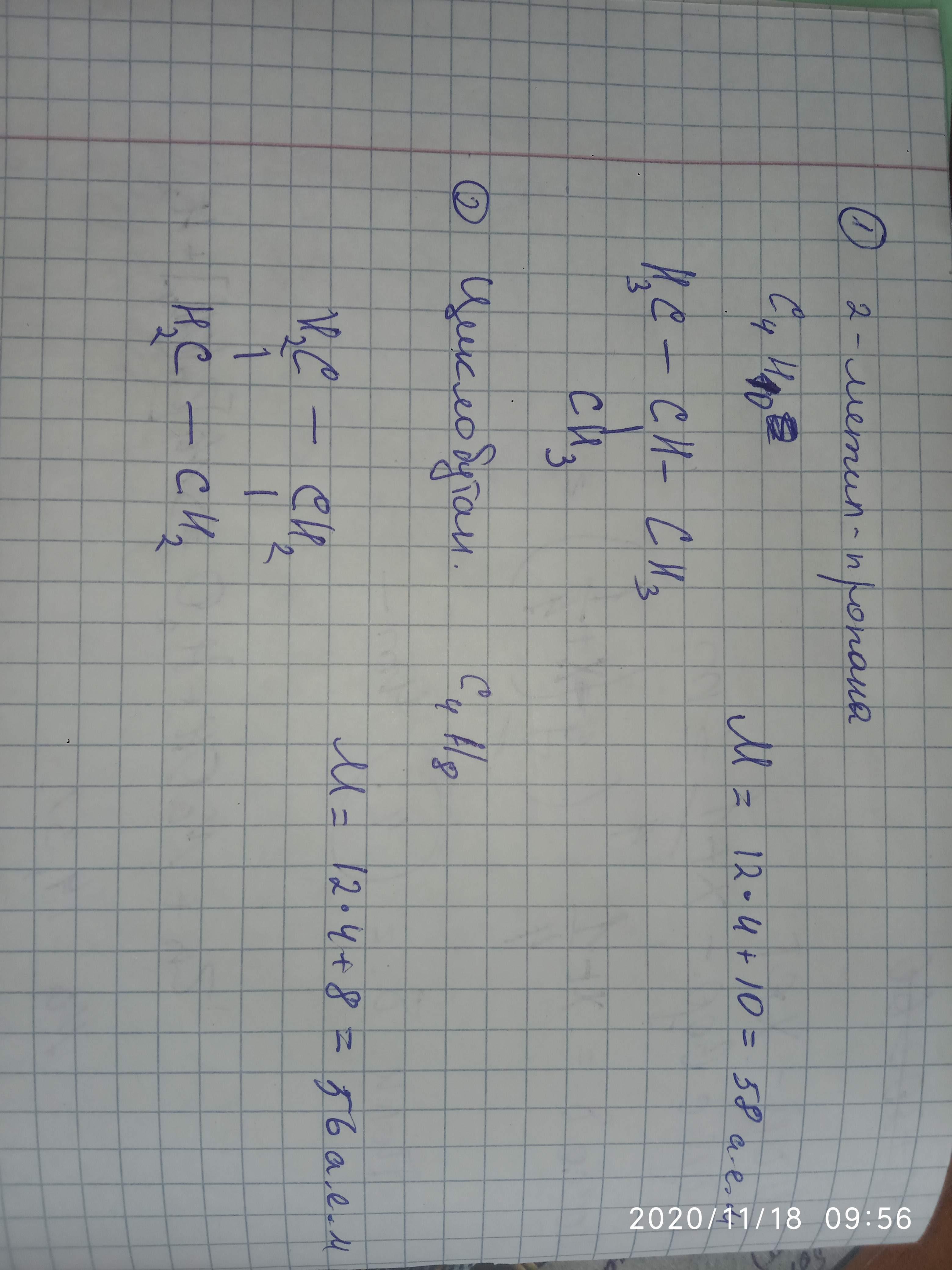 Изготовьте модели молекул: а) 2-метилпропана, б) циклобутана.