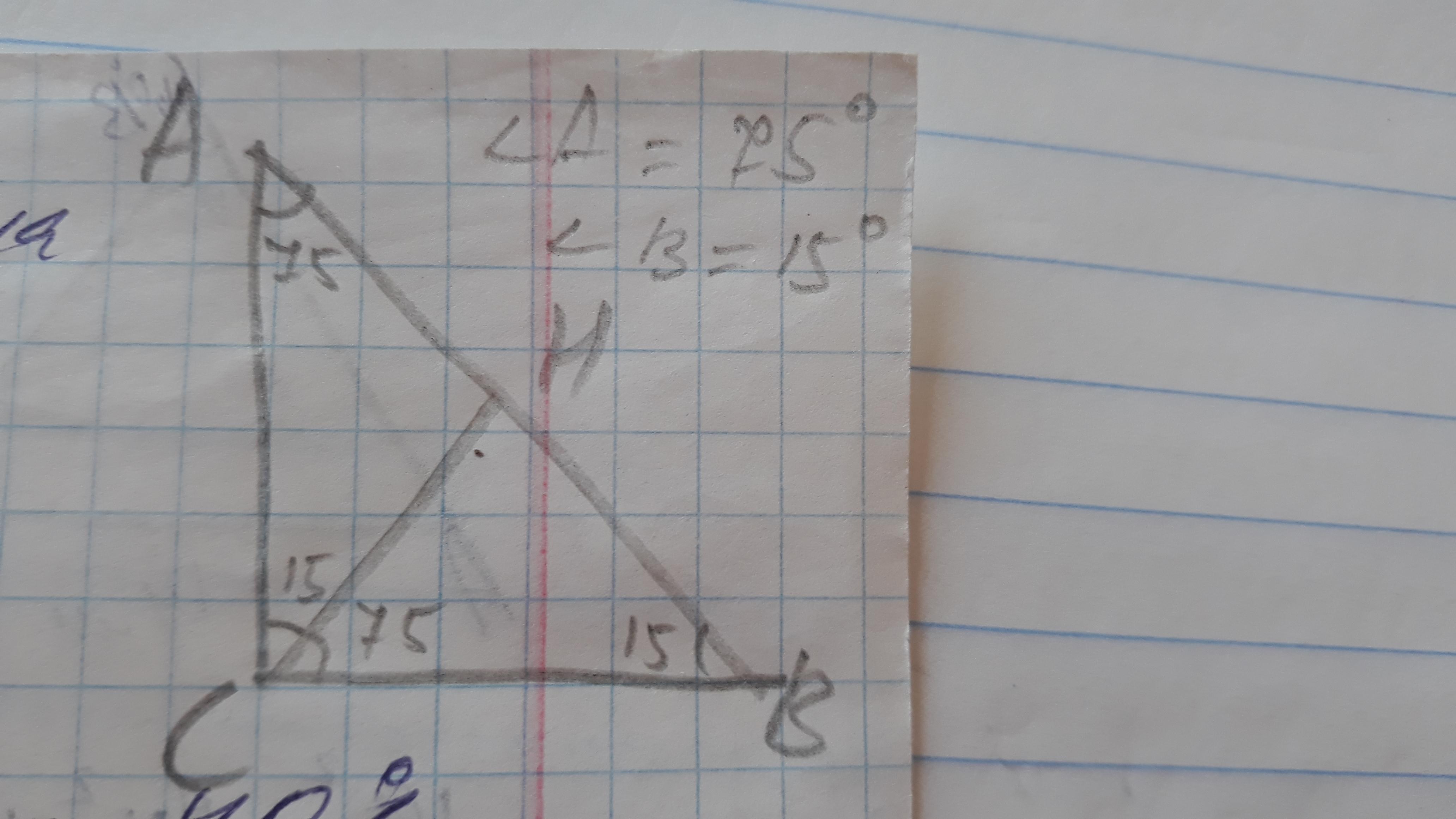 ника ABC (ACB=90°) дорівнює 15°. Знайдіть гострі кути .