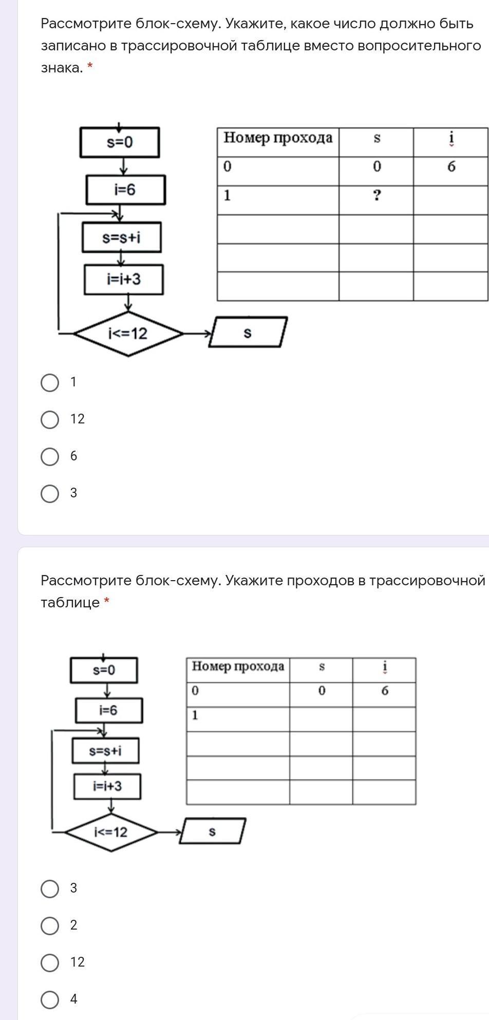 1)Рассмотрите блок-схему. Укажите, какое число должно быть записано в трассировочной таблице вместо вопросительно знака