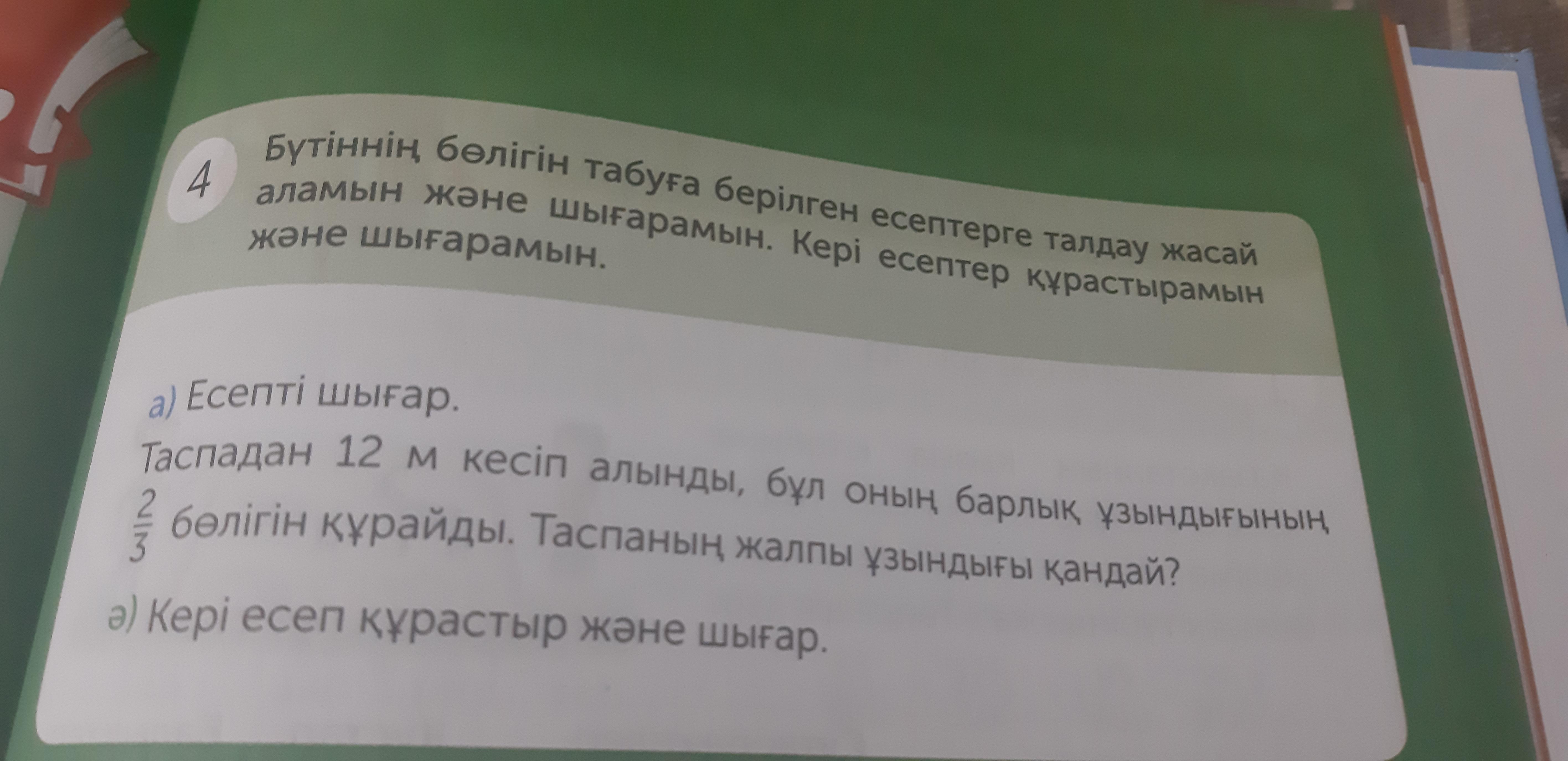 Ответ: таспаның ұзындығы 18м болады оның 2/3 бөлігі 12 метр, ягни арбир болиги 6 метрден