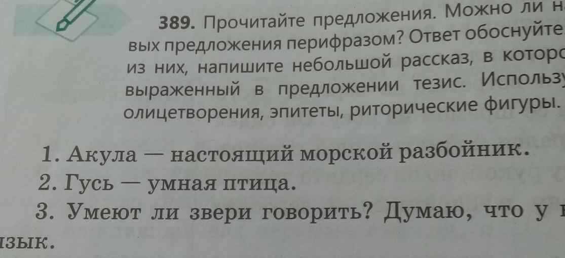389. Да, первое и второе предложения можно назвать перифразом, потому в них описываются качества животных.