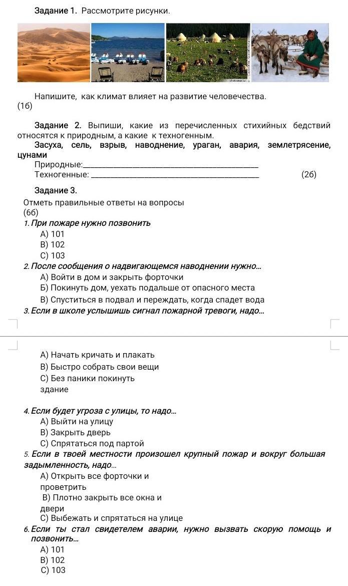 Задание 2. Выпиши, какие из перечисленных стихийных бедствий относятся к природным, а какие к техногенным.