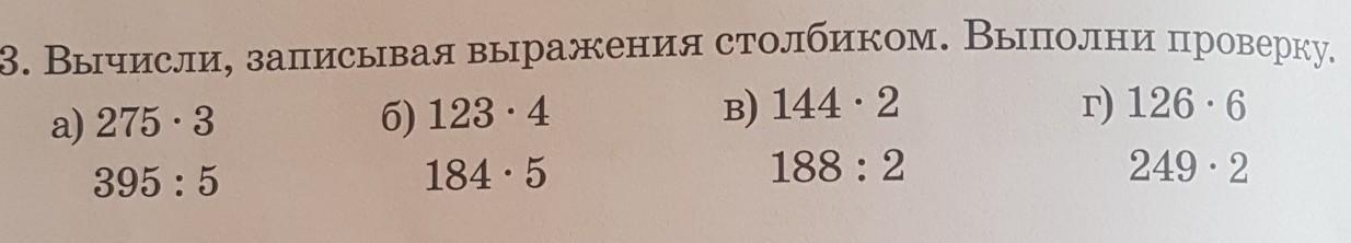 3. Вычисли, записывая выражение столбиком. Выполни проверку.