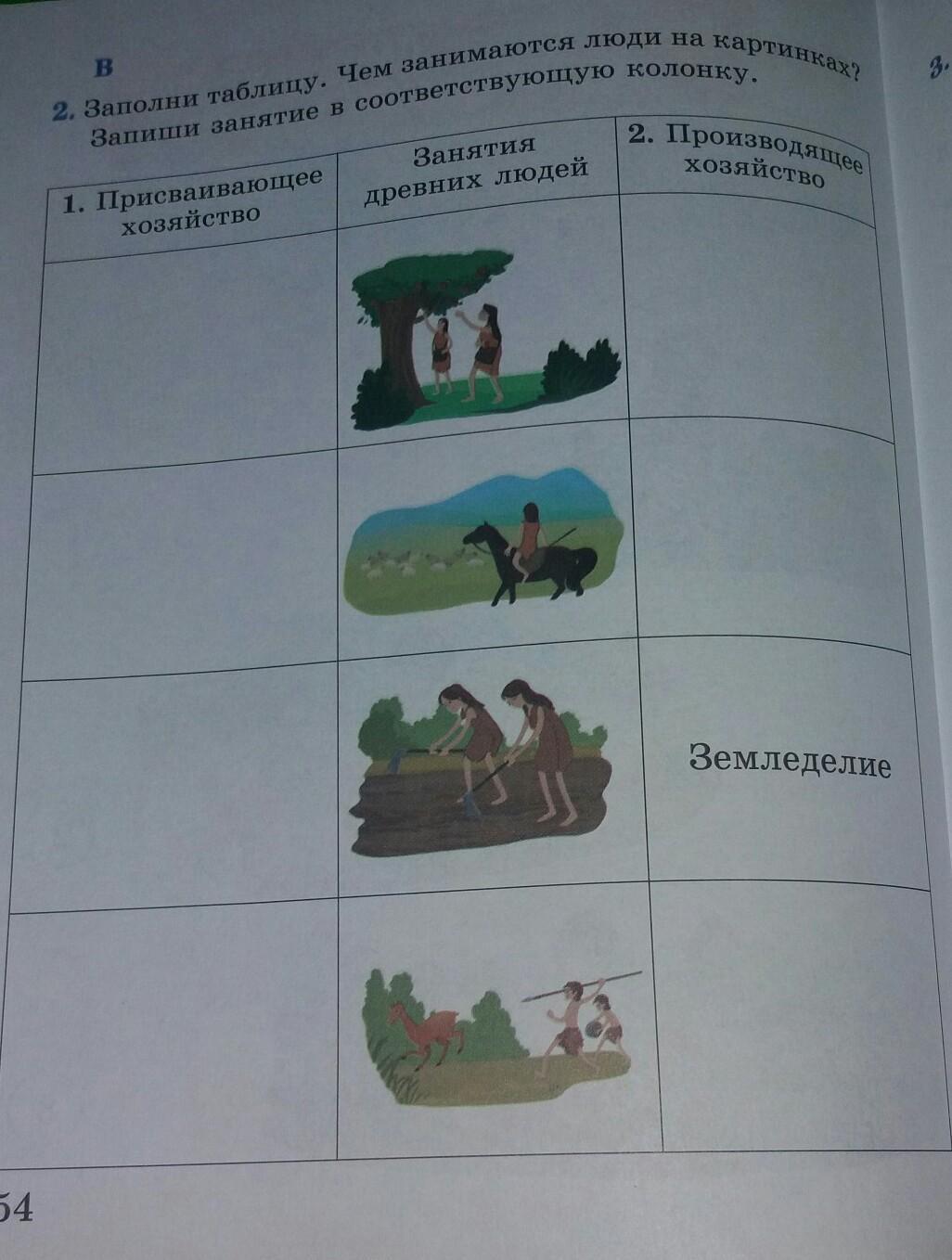 заполни таблицу . чем занимаются люди на картинках ? запиши занятие в соответствующую колонку.
