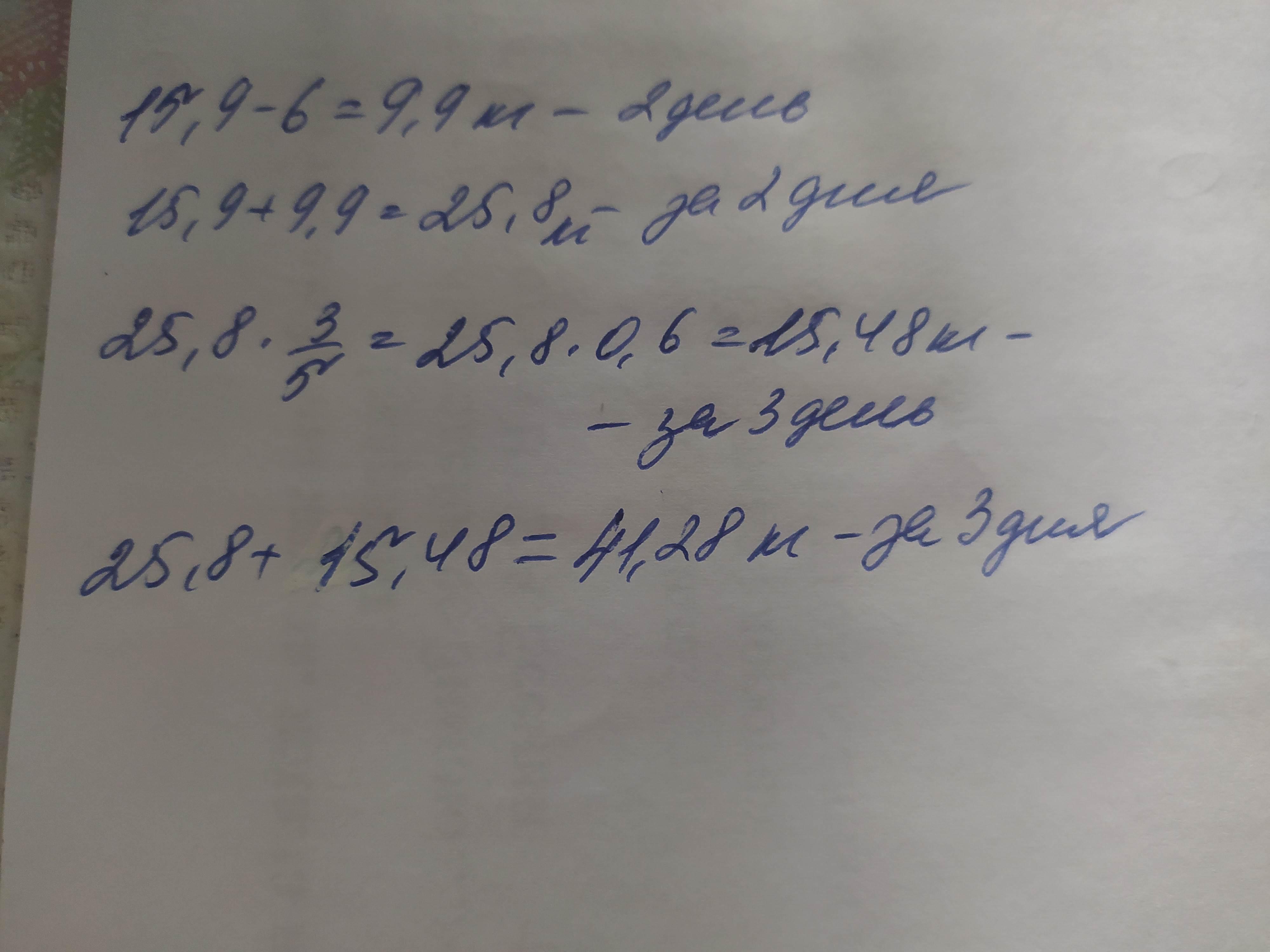 2)15,9+9,9=25,8 килограмм продали за 2 дня