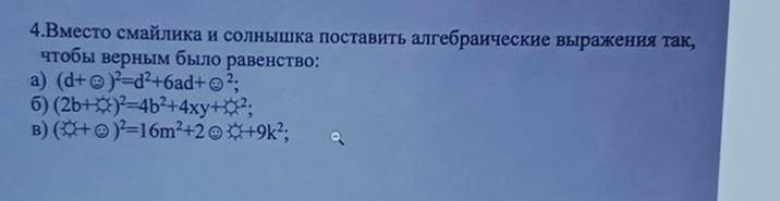 4.Вместо смайлика и солнышка поставить алгебраические выражения так,