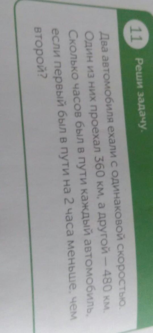 мы знаем,что первый автомобиль проехал на 2 меньше,чем второй. Значит,разница между расстояниями ,деленная при этом на 2(ч), равна их скорости за час езды.