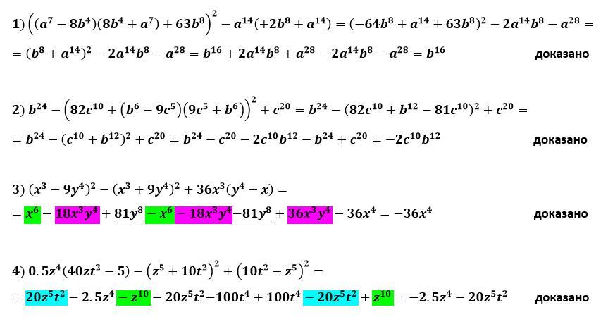 35.24. 1) ((a? - 864) (864 + a?) +6368)2 – a14(+268 + a14) = 616;