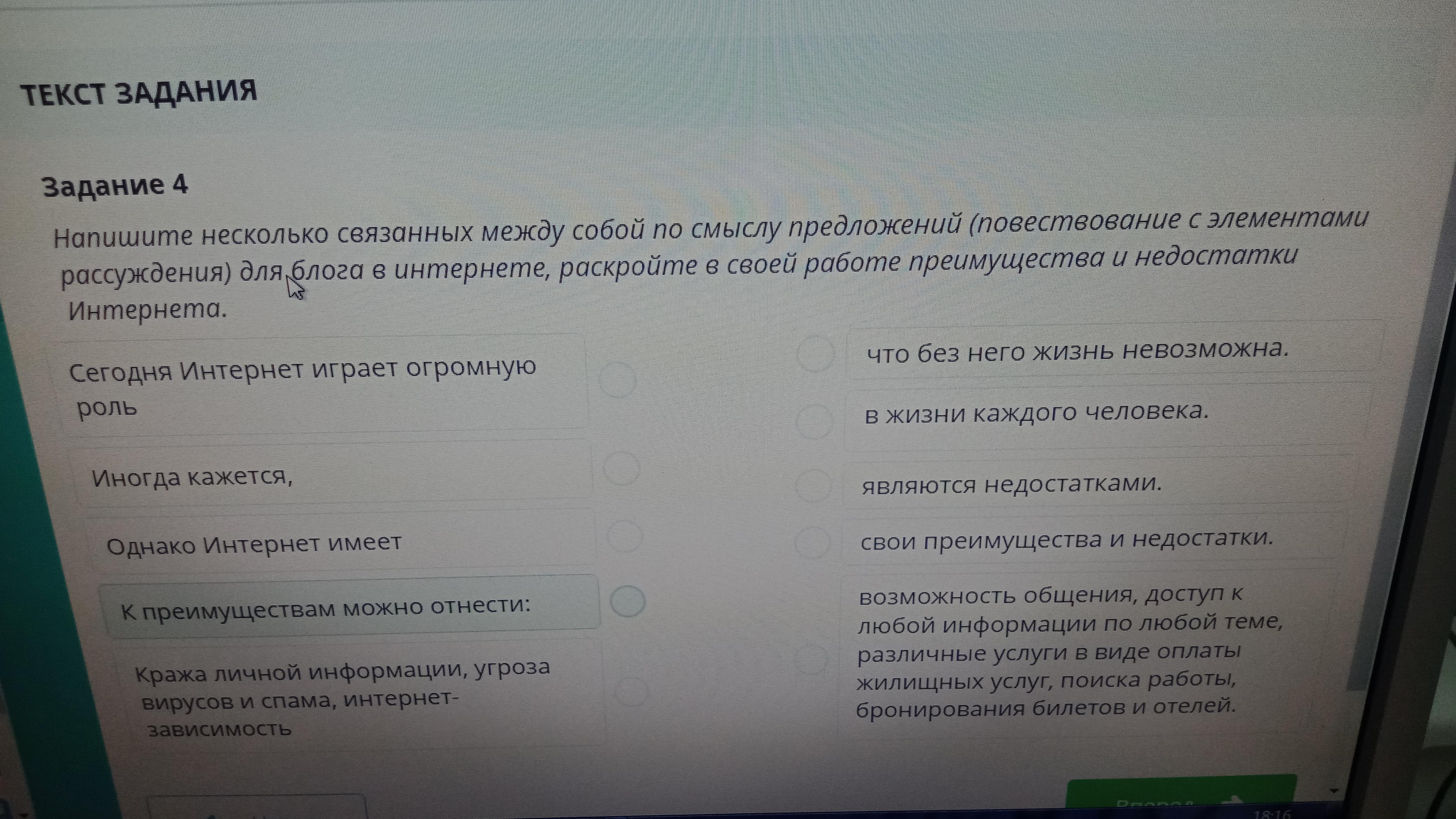 Напишите несколько связанных между собой по смыслу предложения (повествование с элементами рассуждения для блага и в интернете