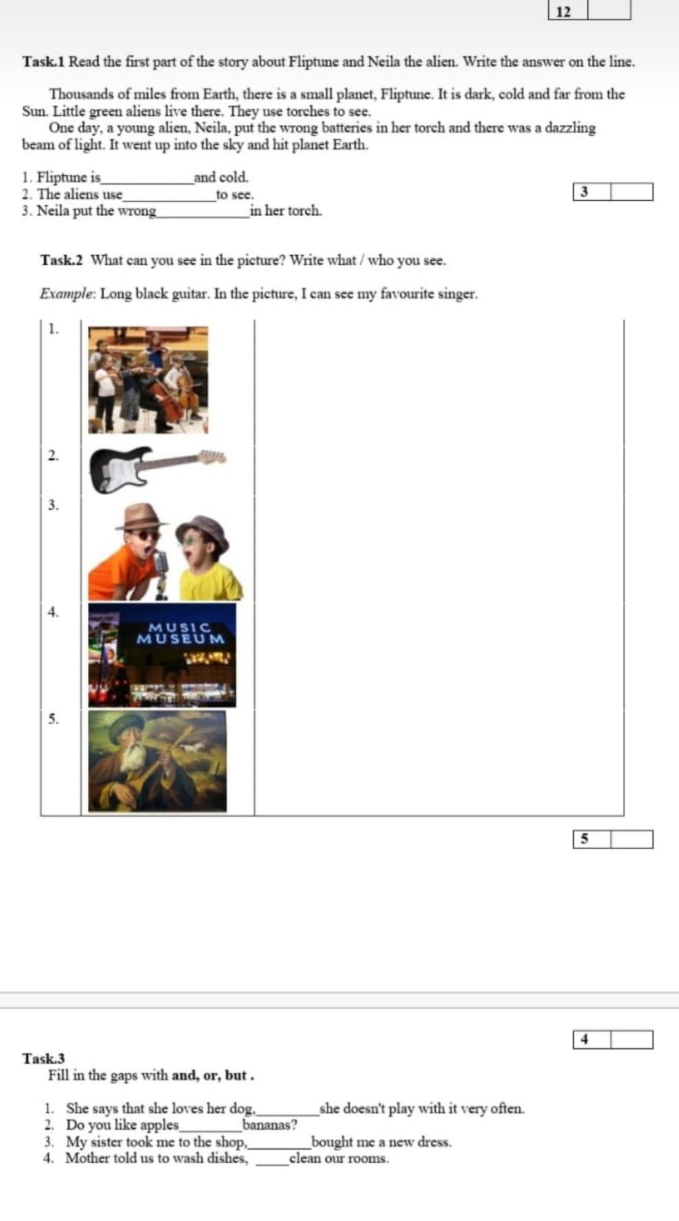Task 2 1) In the picture, I can see children who play musical instruments.