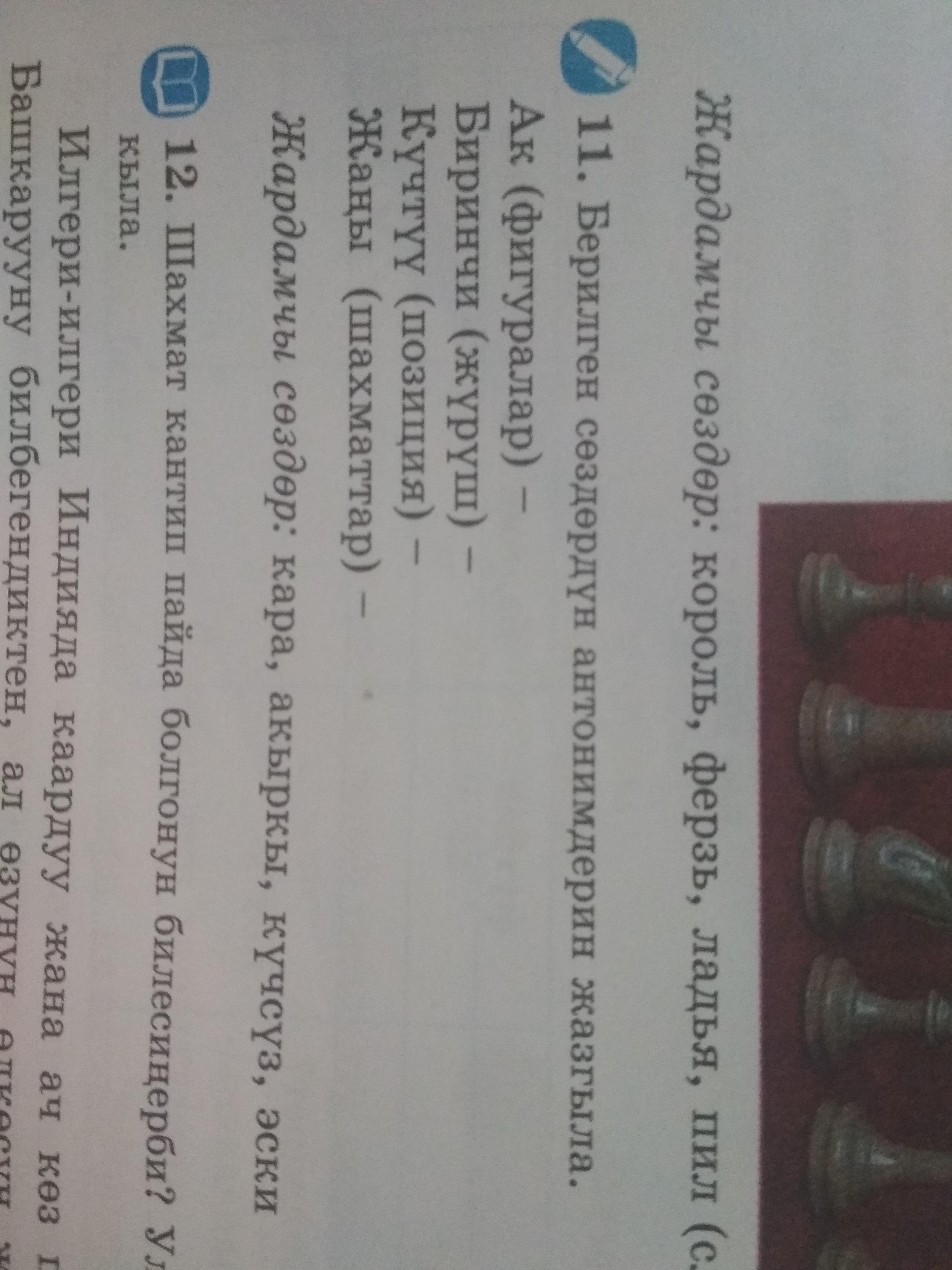 5. Бул оюнда негизги фигура – падыша болот. Бирок ал башка фигу-ралардын (элдин, армиянын) жардамы жок эч нерсеге жете албайт