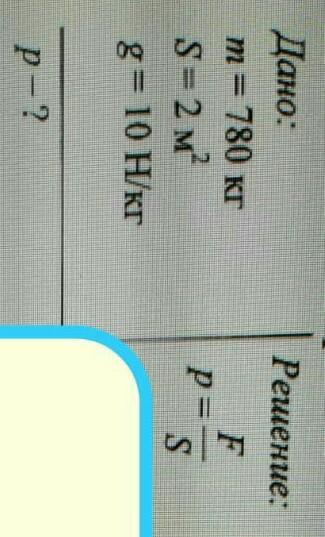 P=F/S=mg/S=7800/2=3900Па.