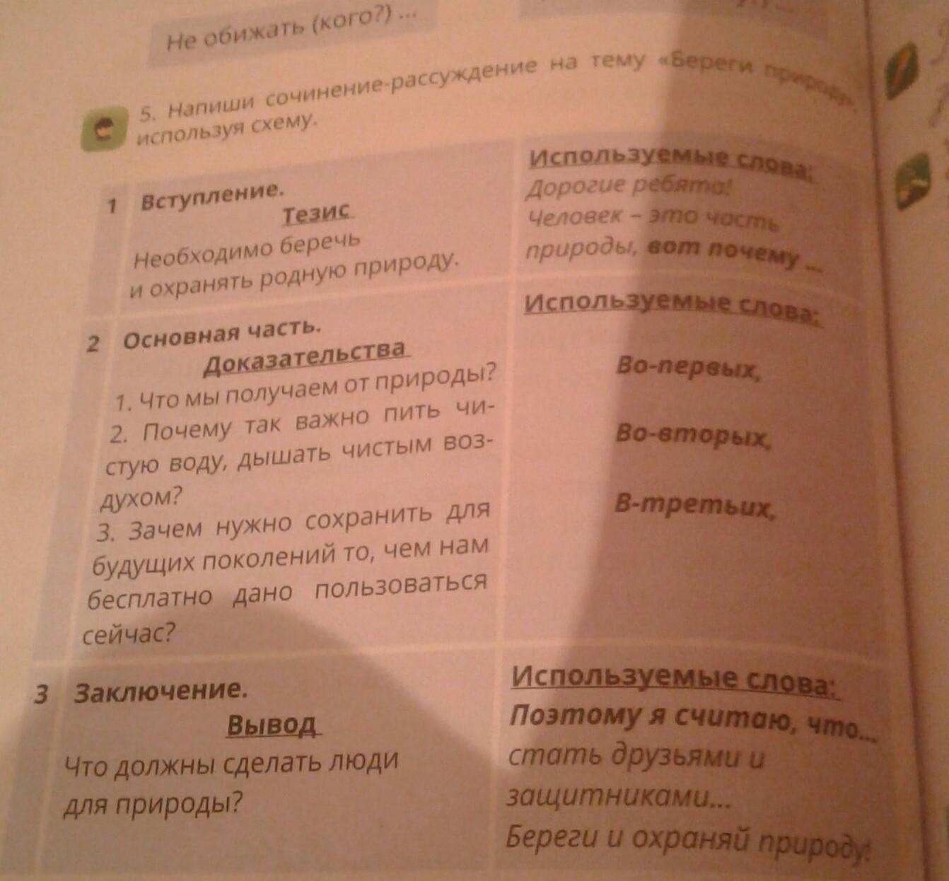 СРООЧНОООО!!!! упражнение номер 5. Напиши сочинение-рассуждение на тему <<Береги природу>> используя схему