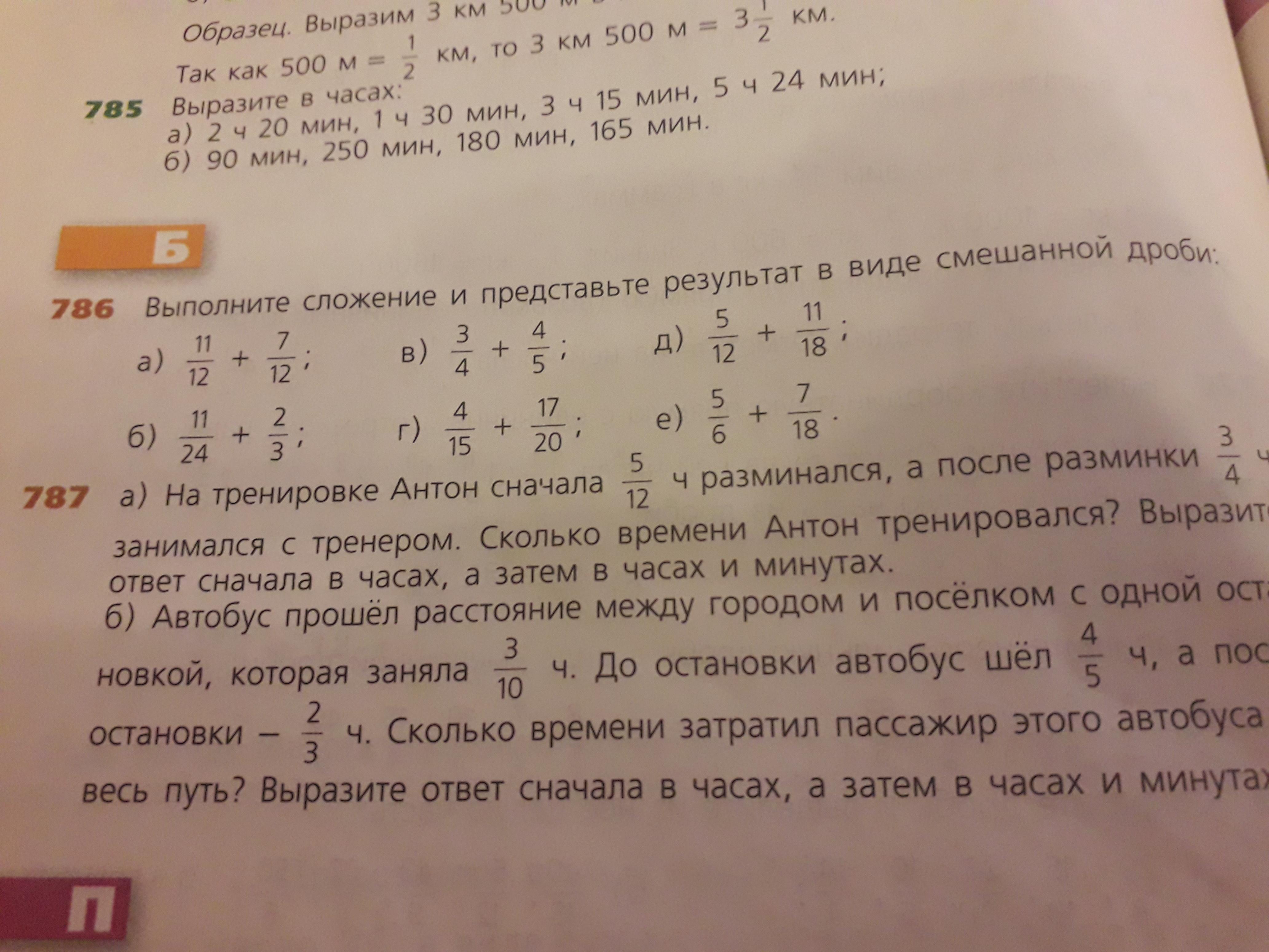 Выполните сложение и представьте результат в виде смешанной дроби. Номер 786.Помогите пожалуйста!!!