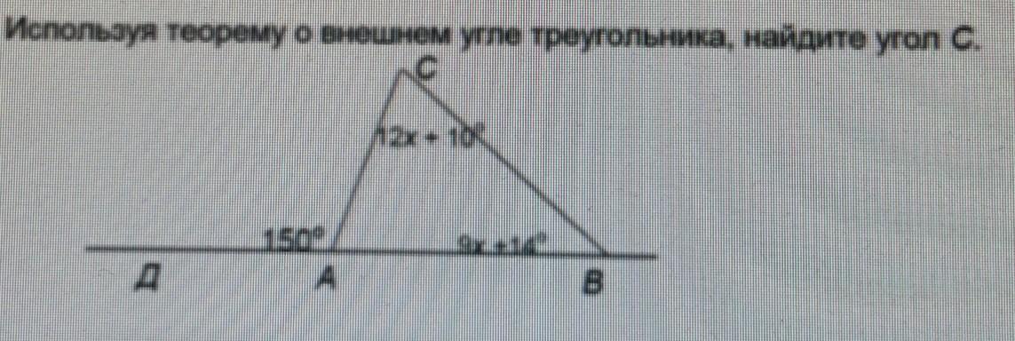 Внешний угол треугольника равен сумме двух других углов, не смежных с ним.
