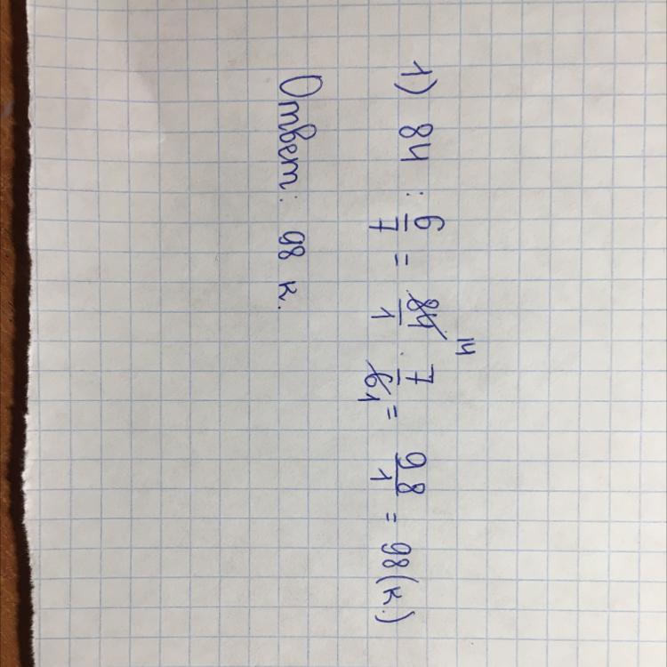 1) 84:6/7=98(к.)