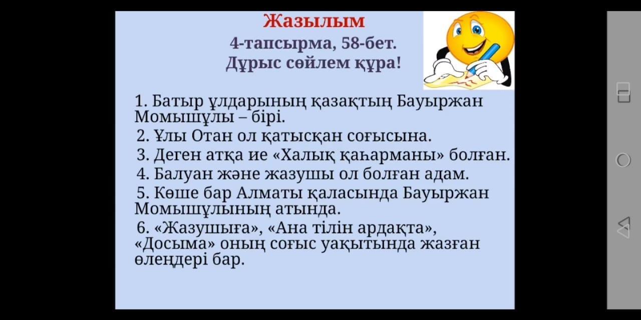 - Батыр Бауыржан Момышұлы қазақтың ұлдарының бірі