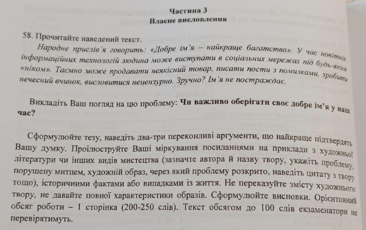 Добре ім'я - найкраще багатство!,- говорить народне прислів'я. Чи важливо оберігати своє добре ім'я в наш час новітніх інформаційних технологій ,коли можна виступати під будь яким ніком. Висловившись нецензурно ,написавши щось з помилками ,зробивши нечесний вчинок , ніхто й не дізнається. Потім продаси незнайомим не якісний товар чи послуги - нічого, все одно більше ніколи не побачитесь. Тож роби як тобі зручно,але таємно - ім'я не постраждає. Викладіть ваш погляд на цю проблему .