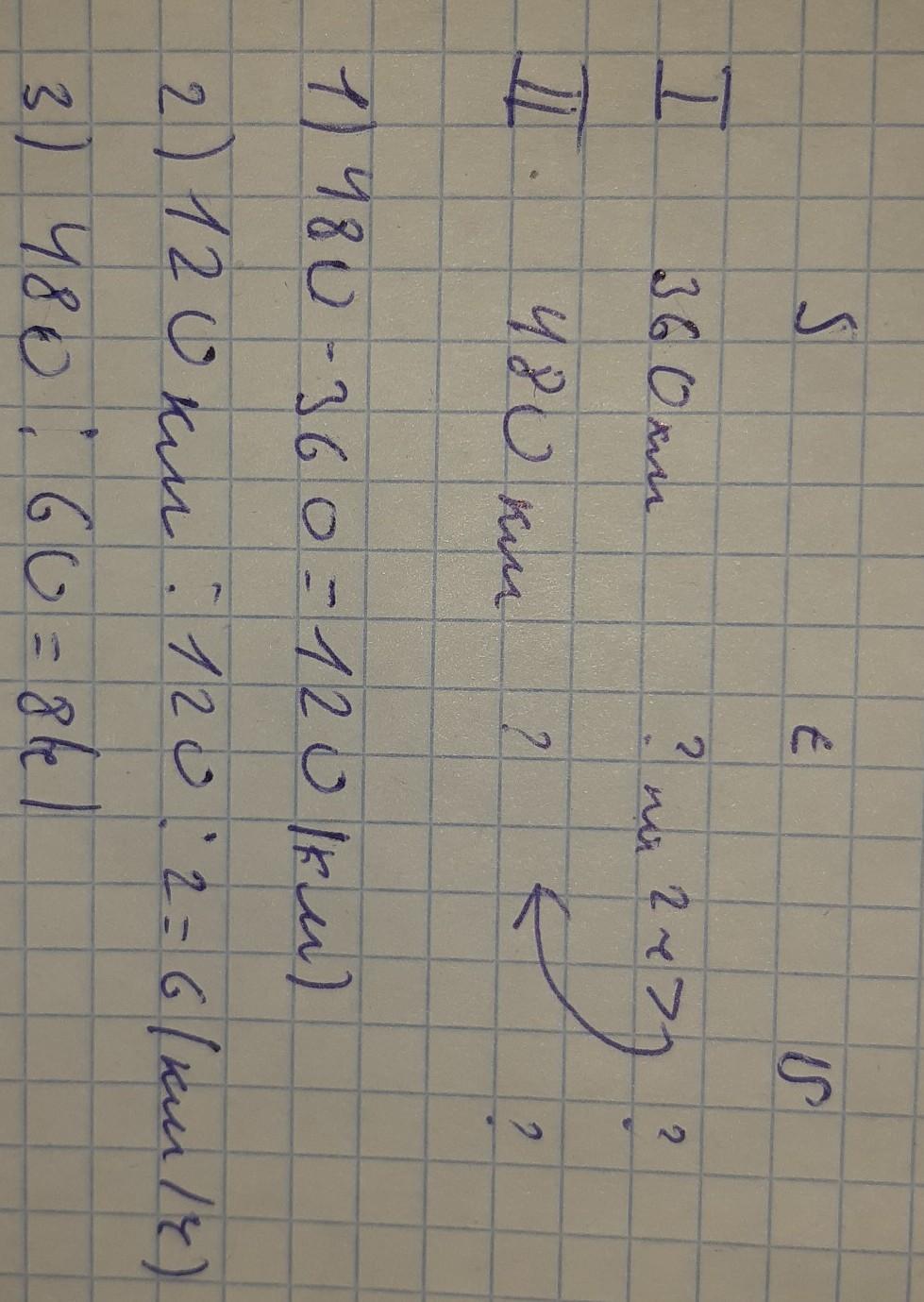1) Для начала мы можем найти расстояние, которое проехал второй автомобиль после остановки первого: 480-360=120(км)