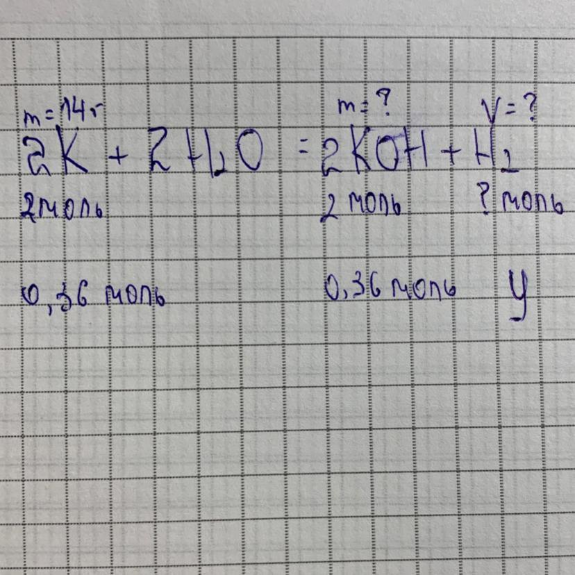 n(K) = m(K) : M(K) = 14г : 39г/моль ≈ 0.36 моль