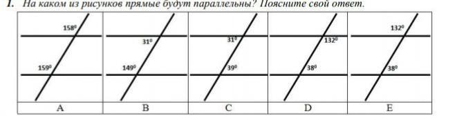 Срочно (;´༎ຶٹ༎ຶ`)На каком из рисунков прямые будут параллельны? Поясните свой ответ.