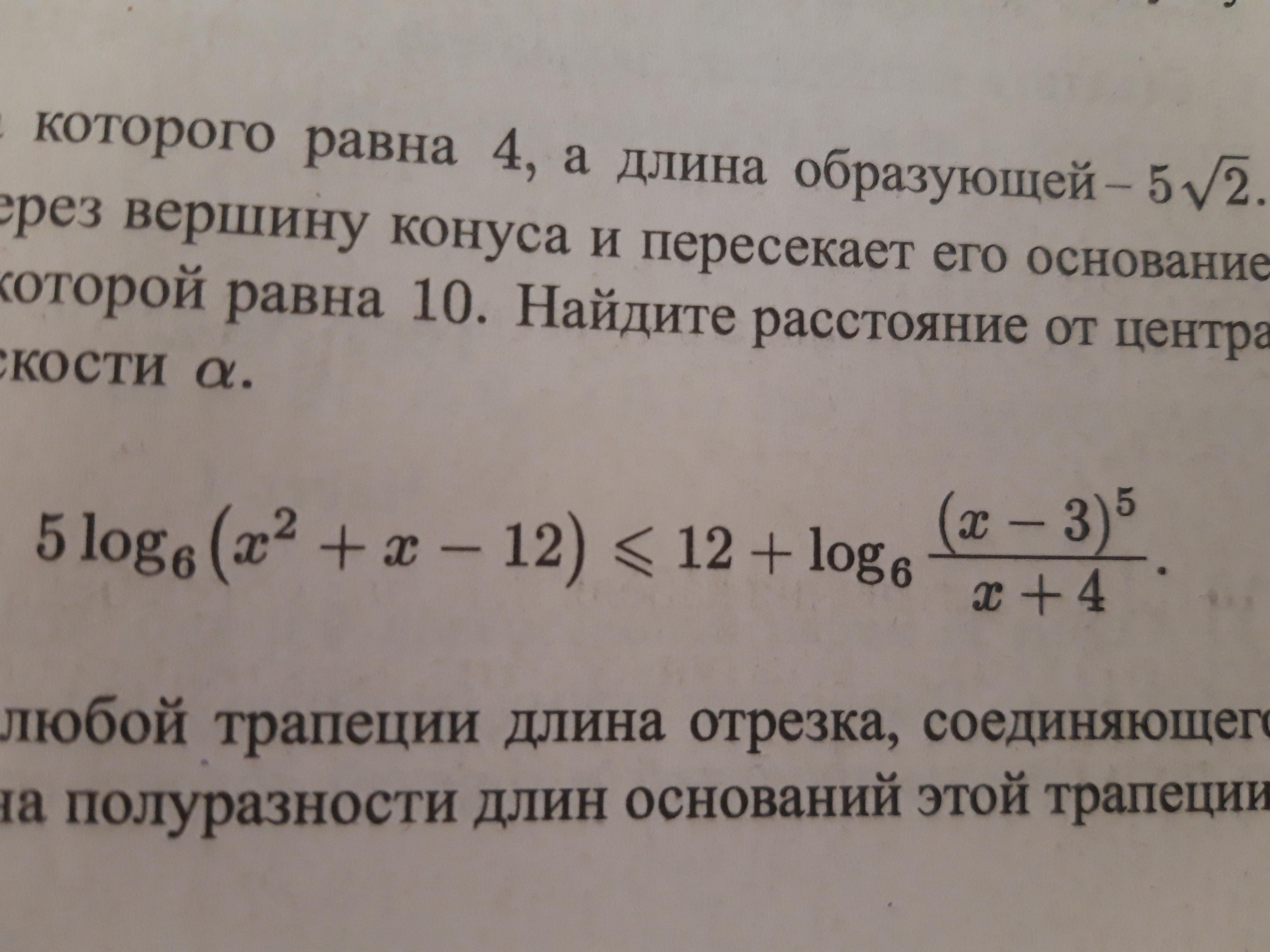 log₆(x²+x-12)⁵=<12+ log₆(x-3)⁵/(x+4)